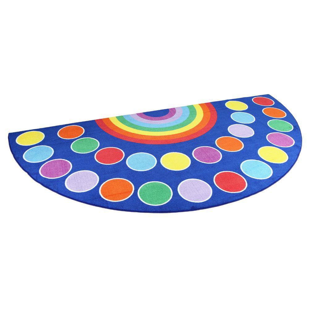 This highly colourful semi-circle placement carpet features 24 placement spots and 1 teacher spot.
