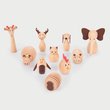Meet our new animal friends! A beautifully made set of solid beechwood animals from around the world, with simple printed features and faux leather detailing to add to their charm. Contains a stag, dog, cockerel, owl, sheep, pig, giraffe, hippo, elephant and penguin with a cotton drawstring storage bag.