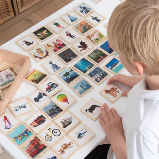 Spark creativity, language development and imaginative thinking with this comprehensive Wooden Story-Telling Tile Set. Featuring 90 durable wooden tiles, including animals, characters, places, transport, celebrations, weather, everyday scenes and intriguing objects, giving children endless opportunities to create unique stories and sequences.