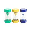 Make time management simple and visual with this Set of 3 Mega Sand Timers. Each timer features moulded end caps and a shatterproof plastic barrier that protects the inner glass, offering long-lasting, child-friendly durability. The set includes three colour-coded timers, Green = 1 minute, Yellow = 3 minutes, Blue = 5 minutes.