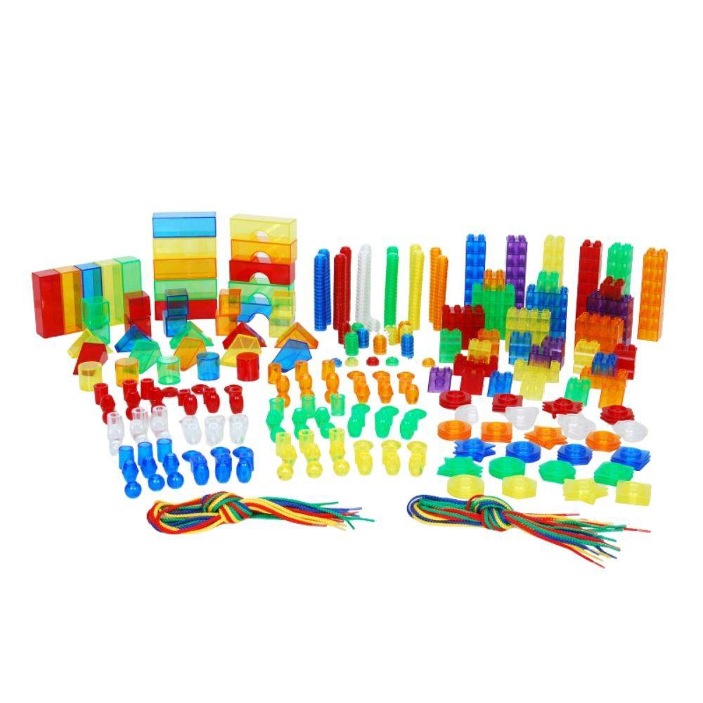 The brightly coloured translucent pieces pair beautifully with illuminated surfaces, helping children observe light, shadow, colour mixing and visual contrast. Supplied with laces for threading, the set also strengthens hand–eye coordination and dexterity. Ideal for nurseries, preschools and primary classrooms, this versatile kit is an essential addition to any sensory or STEAM learning environment.