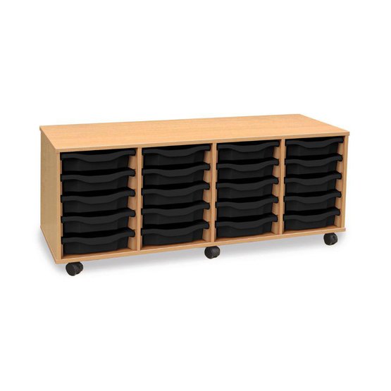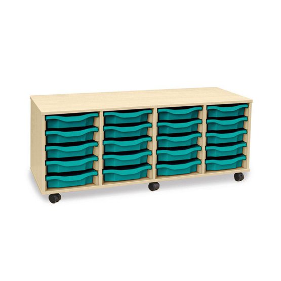 20 shallow tray storage unit, complete with castors, trays and/or shelves. Available in Beech or Maple carcass.