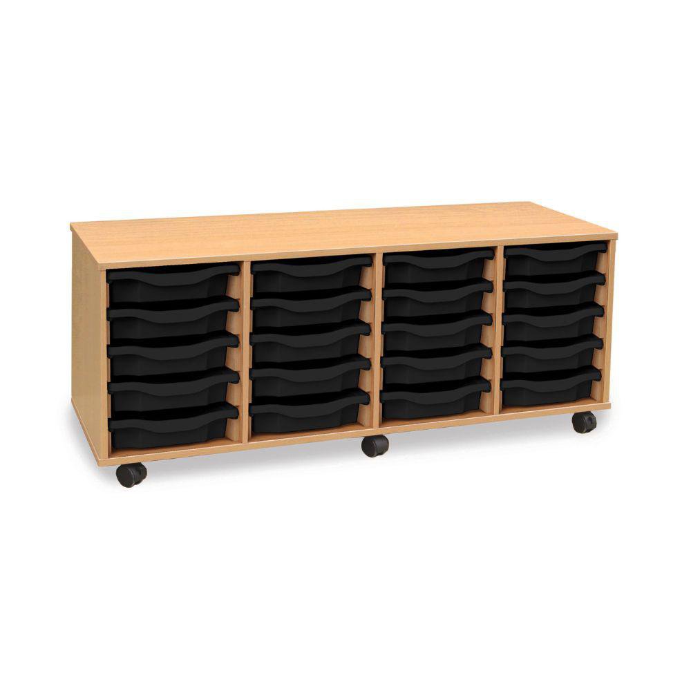 Tray units are supplied with corresponding trays and strong non-marking shatterproof nylon castors (two with locking facility). Each with a load capacity of 20kg. Trays available in 23 different colours