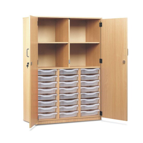 24 Shallow Tray Cupboard with Full Locking Doors available in both Beech and Maple carcass.