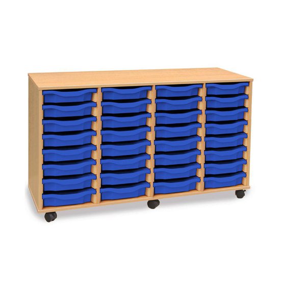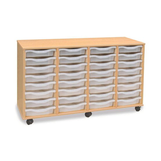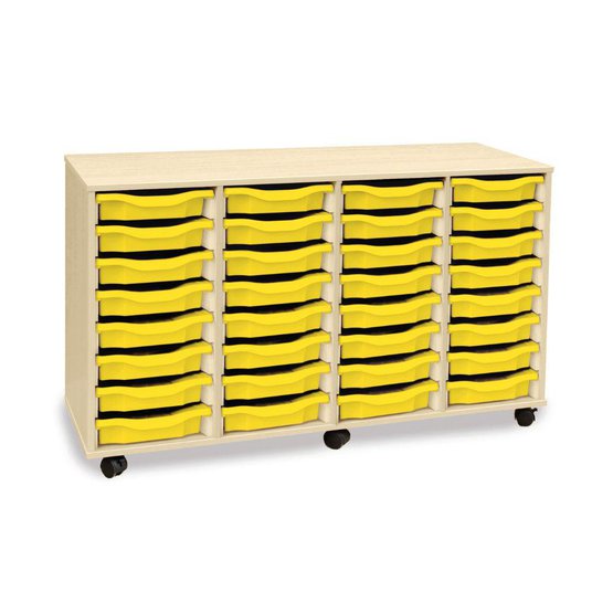 32 shallow tray storage unit, complete with castors, trays and/or shelves. Available in Beech or Maple carcass.