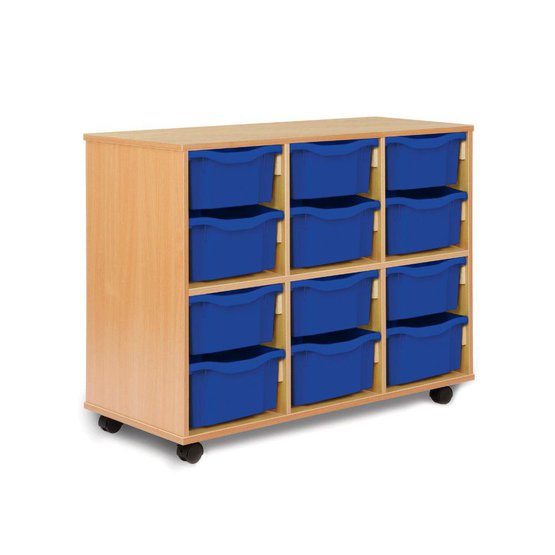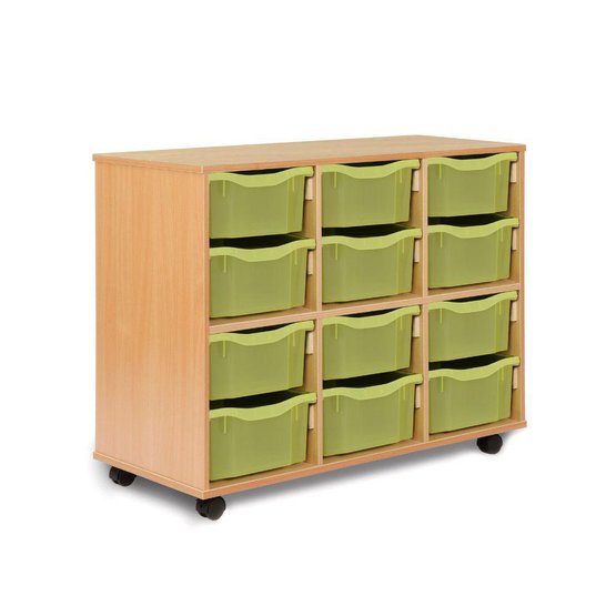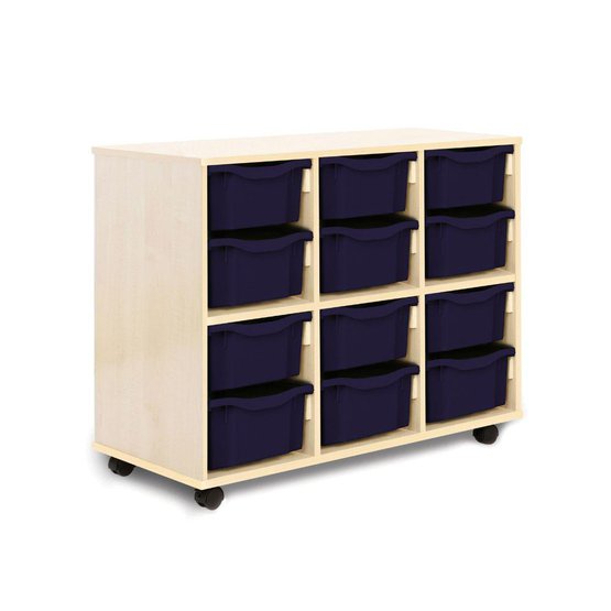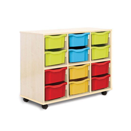 Allsorts 12 deep stackable tray unit, designed to stack with other units within the range, complete with castors for stand alone option. Available in Beech or Maple carcass.